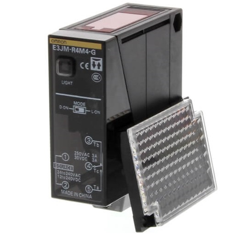 Capteur photoélectrique; Format: Parallélépipédique; Principe du capteur: Barrière réflex; Principe de détection: Barrière sur réflecteur; Portée: 4 m (E39-R1); Source d'émission: LED, Lumière rouge, Polarisée; Sortie de commutation: PNP; Mode de commutation: Commutation claire/sombre; Raccordement: Bornes à vis, via PF1/2; Tension d'alimentation: 12-240 Vc.c./24-240 Vc.a.; Dimensions (l x H x P): 25 mm x 65 mm x 65 mm; Matériau du boîtier: ABS; Degré de protection: IP66 (IEC 60529); Température de fonctionnement: –25 °C ... +55 °C; Série: E3JM
