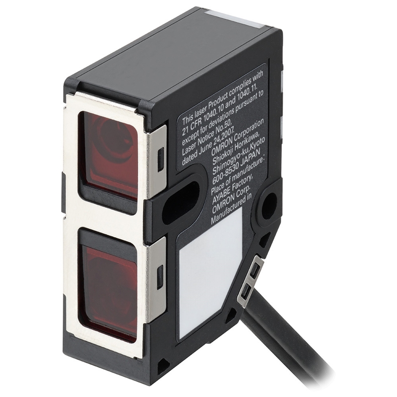 Tête de détection laser, portée de 70mm +/-15mm, taille du spot 0.1mm, longueur de câble 2 mètres, à connecter à un amplificateur de détection laser E3NCLAxxx, A utiliser avec l'équerre E39-L186