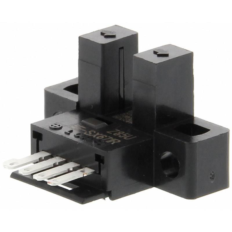Micro fourche optique; Format: Fourche en U; Type: En forme de T; Principe du capteur: Barrière; Principe de détection: Émetteur-récepteur; Ecartement de la fourche: 5 mm; Profondeur de la fourche: 9 mm; Source d'émission: LED, Lumière infrarouge; Sortie de commutation: NPN; Mode de commutation: Commutation claire/sombre; Fréquence de commutation: 1 kHz; Raccordement: Connecteur 4 broches; Tension d'alimentation: 5-24Vdc; Led de visualisation: Non; Classe de protection: IP50; Température de fonctionnement: -25 ... +55°C; Série: EE-SX67
