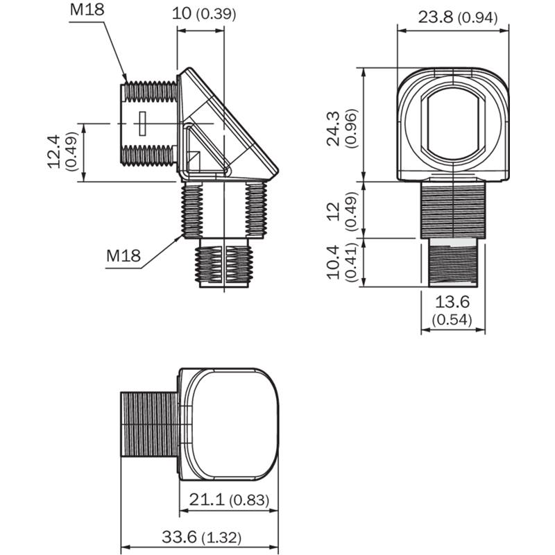 Capteur photoélectrique; Format: Hybride, M18 x 1; Principe du capteur: Barrière réflex; Distance de commutation max.: 0,1 m ... 4,8 m (sur PL80A); Réglage: Aucun; Source d'émission: LED, Lumière rouge visible, Polarisée; Taille du spot lumineux (distance): 125 mm x 125 mm (1 m); Sortie de commutation: PNP; Mode de commutation: Commutation sombre; Fréquence de commutation: 400 Hz; Interface de communication: -; Mode de raccordement: Connecteur mâle M12, 4 pôles; Tension d'alimentation: 10-30Vdc; Dimensions (l x H x P): 23,8 mm x 43,4 mm x 33,6 mm; Matériau du boîtier: Plastique ABS renforcé de fibres de verre; Indice de protection: IP67; Température de fonctionnement: –25 °C ... +50 °C; Compris dans la livraison: Écrou de fixation M18; Série: ELF3