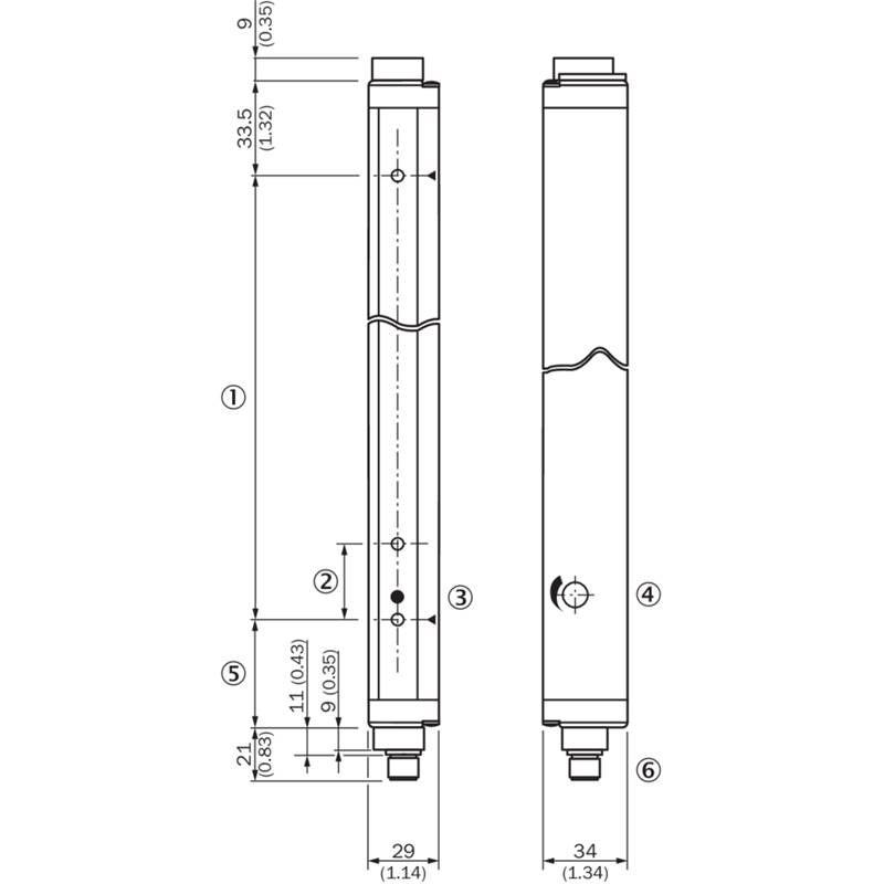 Rideau d'automatisation commutable; Principe du capteur: Émetteur / récepteur; Évaluation des faisceaux: Faisceau parallèle; Portée de travail: 12 m; Entraxe des faisceaux: 30 mm; Hauteur de détection: 2.070 mm; Plus petit objet détectable (MDO): 35 mm (Faisceau parallèle); Sortie de commutation: 2 x PNP; Temps de réponse: 130 ms; Raccordement: Connecteur mâle M12, 4 pôles; Tension d'alimentation: 15-30Vdc; Dimensions (l x H x P): 34 mm x 2.146 mm x 29 mm; Matériau du boîtier: Aluminium; Indice de protection: IP65; Température de fonctionnement: –25 °C +55 °C; Série: ELG