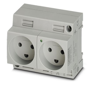 Prise double, avec voyant, Modèles d'enfichage de type K, type de raccordement: Raccordement vissé, coloris: gris, tension nominale: 250 V AC (50 Hz), intensité nominale: 16 A, Montage sur rail DIN et montage direct, normes/prescriptions: SR 107-2-D1, Code du pays: Danemark