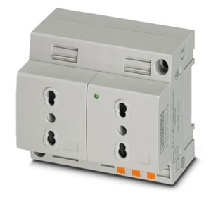 Prise double, type L, Push-in, pour Italie, avec protection étendue contre les contacts accidentel, témoin lumineux, gris, montage sur profilé, interface de service ou montage direct, 250 V AC, 16 A, -20 °C, 60 °C, CEI 23-50