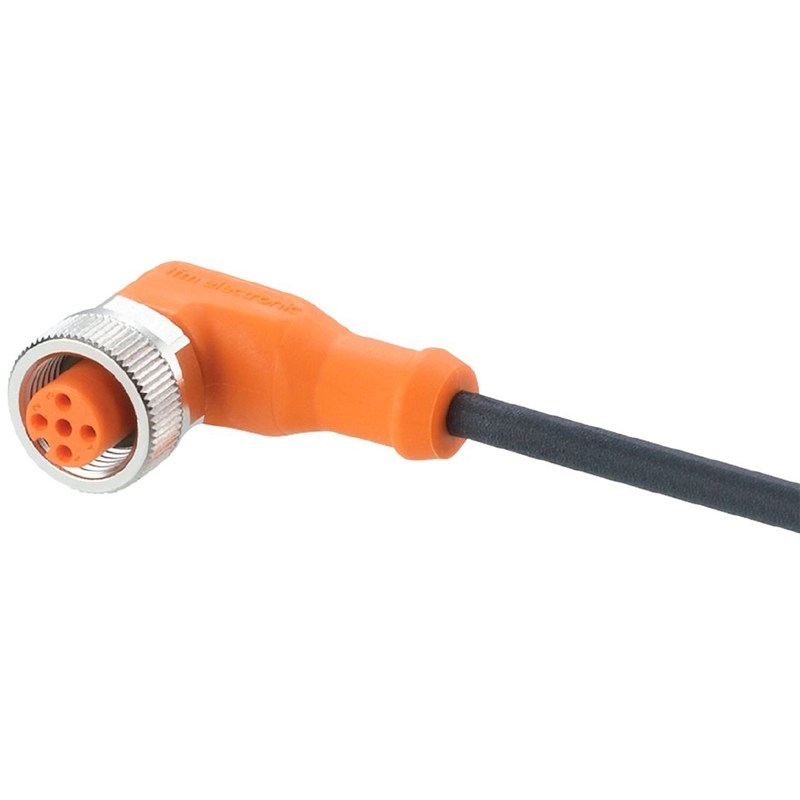 Connecteur / Câble de raccordement; Type: Câble de connexion, M12 x 1; Raccordement A: Connecteur 1 x M12, femelle, droit, codé-A, contacts doré; Raccordement B: Extrémité de câble libre; Câble: 5 m, PUR, Sans halogène, noir, Ø 4,3 mm; 4 x 0,34 mm² (42 x Ø 0,1 mm ); Blindage: Non; Aptitude pour des câbles en mouvement: Oui; Matériau, connecteur: TPU orange; Matériau, écrou moleté: Laiton, nickelé; Couple de serrage: 0,6...1,5 Nm; Tension d'alimentation: < 250 VAC / < 300 VDC; Courant de sortie total: 4 A; Indice de protection: IP 65, IP 67, IP 68, IP 69K; Température ambiante: -25...90 °C; Température ambiante en mouvement: -25...90 °C