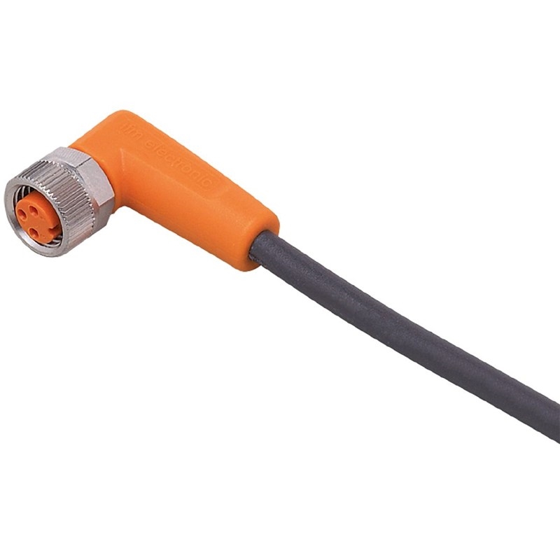 Câble avec prise femelle; AC/DC; Tension d'alimentation < 50 V; 5 m PUR-Câble; M8 Connecteur; 5 m; PUR; Sans silicone; Sans halogène; contacts dorés; Aptitude pour des câbles en mouvement; Connecteur femelle coudé; M8; 3 pôles
