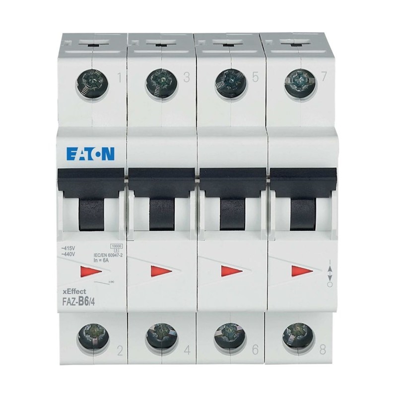 Disjoncteur modulaire - Eaton Moeller série xEffect FAZ. Disjoncteur modulaire FAZ, 6 A, 4 pôles, caractéristique de déclenchement : B