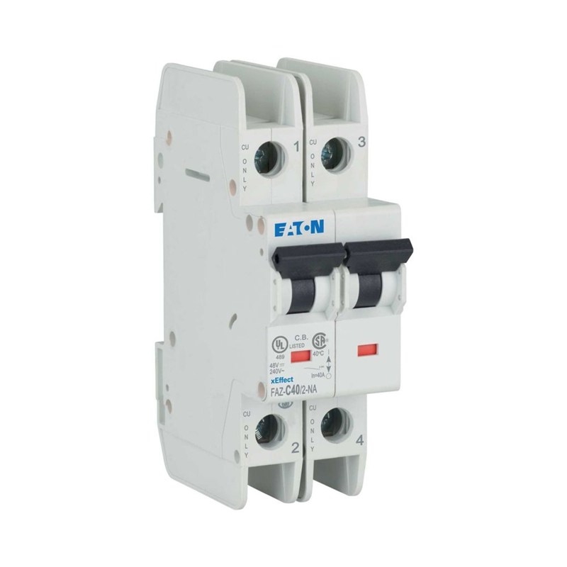 Disjoncteur modulaire - Eaton Moeller série xEffect FAZ-NA. Disjoncteur modulaire, FAZ-NA, 40 A, 2 pôles, caractéristique de déclenchement : C, bornes à cages et à vis, appareillage de commutation destiné à l’exportation vers l’Amérique du Nord (homologué UL)