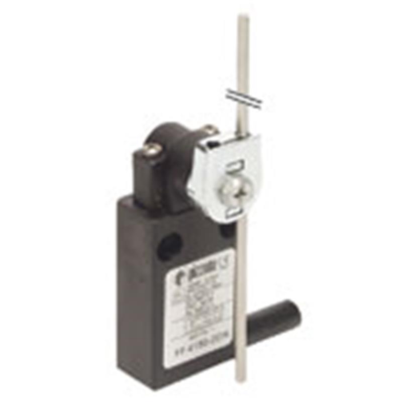 Interrupteur précablé à levier rotatif avec tige ronde réglable; Boîtier: Boîtier métallique, entr'axe trous 20 mm, IP67; Blocs de contact: 1NO+1NC rupture brusque; Ouverture positive: Oui; Actionneur: Levier rotatif avec tige ronde réglable; Type de connection: Connecteur; Type de câble ou connecteur: Connecteur AMP super seal 1,5; Connexion (direction de la sortie): Axiale; Type de contacts: Contacts en argent; Température ambiante: -25°C ... +80°C