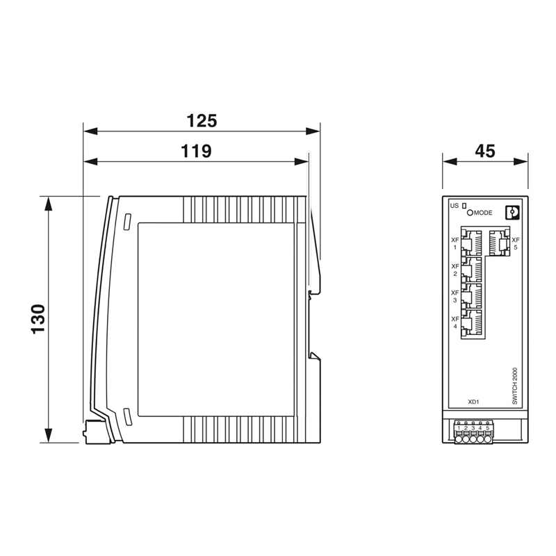 Switch Ethernet industriel manageable 2000 série, 5 Ports RJ45 10/100 MBit/s, indice de protection: IP20, Température ambiante (fonctionnement): 0 °C ... 60 °C, Plage de tension d'alimentation: 18 V DC ... 32 V DC, PROFINET Conformance-Class A, Processus de développement certifié selon la norme CEI 62443-4-1, Compatible avec la norme CEI 62443-4-2