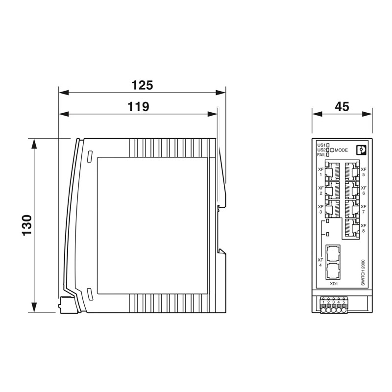 Managed Switch 2000, 7 Ports RJ45 10/100 MBit/s, 1 SC multimode 100 MBit/s, Indice de protection IP20