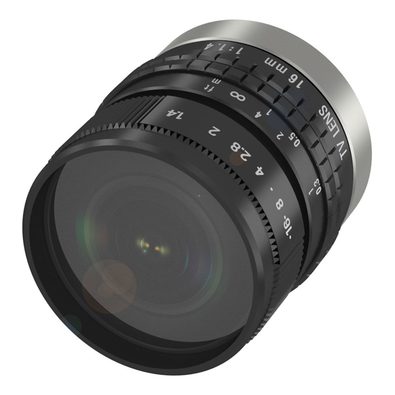 Objectif, Température ambiante: 20...50 °C, Distance focale: 16 mm, Obturateur: 1.4, Distance d'objet minimale (MOD): 300 mm, Angle de vue horizontal: 30.72 °, Angle de vue vertical: 23.17 °, Max. Taille du capteur: 2/3"", Résolution de l'image: 0.3 MP, Fixation: Vis, Monture d'objectif: Monture C, Dimensions: Ø 30 x 33 mm, Matériau: Aluminium, anodisé noir, Poids: 58 g, Texte additionnel: L'angle de vue se réfère à une taille de capteur de 2/3"", Manufacturer: Ricoh