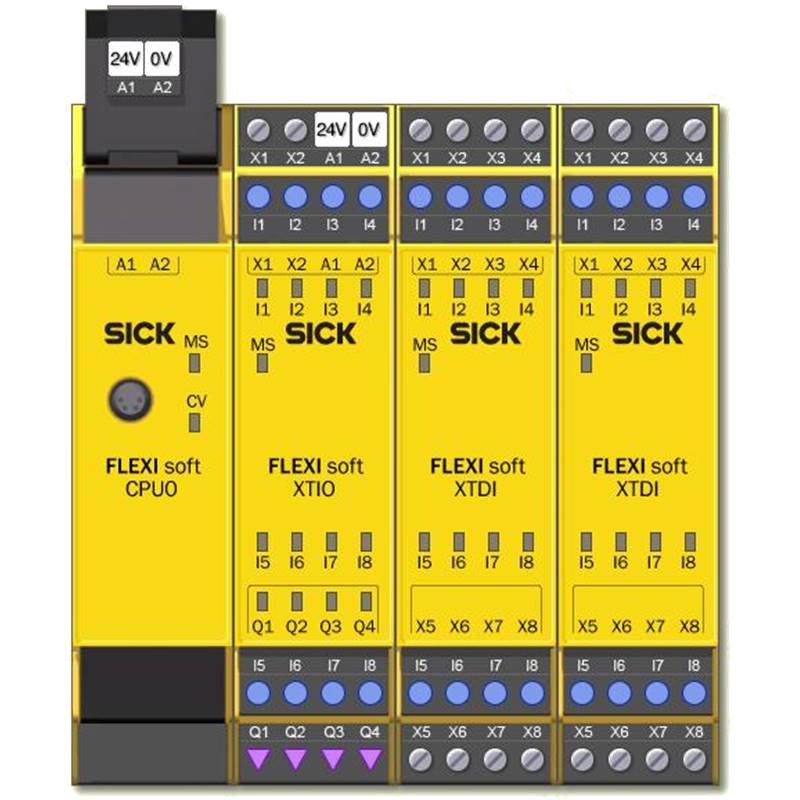 Le système de commande de sécurité Flexi Soft peut être programmé au moyen d’un logiciel. Grâce à la plateforme matérielle modulaire, Flexi Soft résout de manière ciblée et efficace de nombreuses applications de sécurité. Un vaste choix de modules est proposé : modules principaux, passerelles, modules d’entrée/sortie numériques et analogiques, modules Motion Control et des module relais. Le logiciel de configuration sans licence Flexi Soft Designer permet une programmation intuitive, une mise en service rapide et un diagnostic intégral jusqu’au niveau automatisation. Les fonctions dédiées à l’interconnexion sûre des systèmes de commandes, la connexion en série sûre, ou à la surveillance sûre des entraînements contribuent à une réduction des coûts et un accroissement de la productivité. Avec ses nombreuses autres fonctions, Flexi Soft établit la liaison avec les solutions systèmes de SICK.