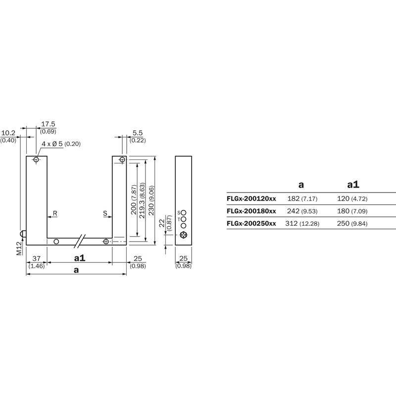 Rideau d'automatisation commutable; Version: Ouvert; Entraxe des faisceaux: 2 mm; Zone de détection (l x H): 180 mm x 200 mm; Sortie de commutation: PNP, NPN; Type de commutation: Commutation claire/sombre; Temps de réponse: < 0,1 ms; Fréquence de commutation: 5.000 Hz; Raccordement: Connecteur mâle M12, 4 pôles; Tension d'alimentation Uv: 18-30Vdc; Dimensions (l x H x P): 242 mm x 230 mm x 25 mm; Matériau du boîtier: Aluminium verni; Indice de protection: IP65; Température de fonctionnement: 0 °C +60 °C; Série: FLG