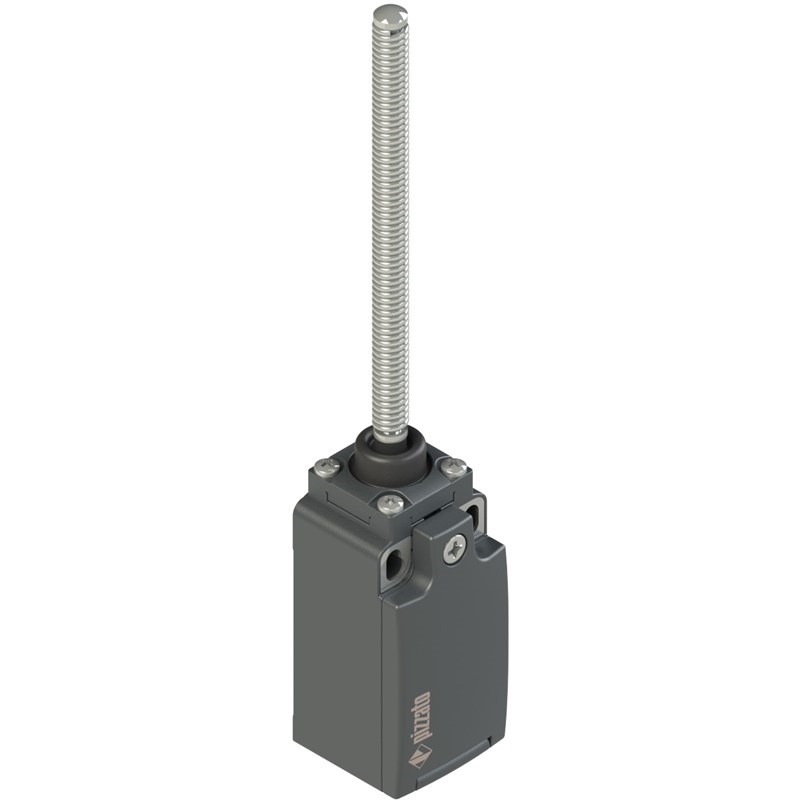 Interrupteur de position à tige à ressort; Boîtier: Boîtier en technopolymère, une entrée câbles filetée PG13,5; Blocs de contact: 2NO rupture brusque; Actionneur: Tige à ressort; Réarmement: Sans réarmement; Parties métalliques externes: Acier galvanisé; Type de contacts: Contacts en argent; Presse-étoupes ou connecteurs pré-installés: Aucun; Degré de protection: IP67 selon EN 60529; Température ambiante: -25°C ... +80°C; Série: FR