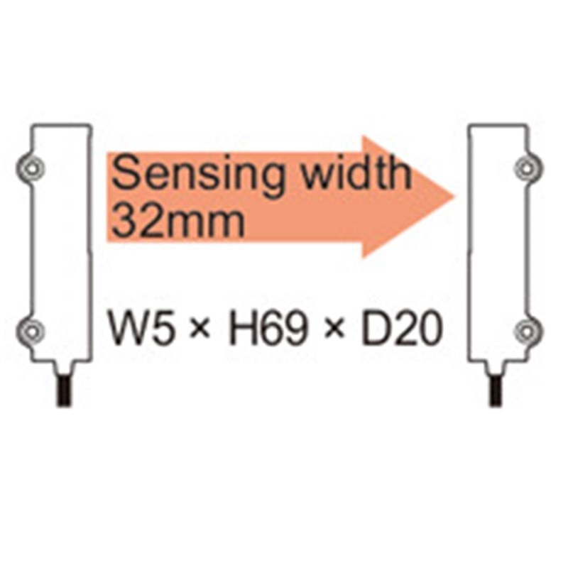 Fibre optique (barrage, type faisceau large, 5 x 69 x 20 mm, détection latérale, rayon de courbure R1, 2 m, IP40)