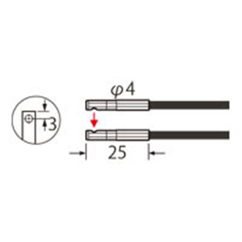 Fibre optique robuste (barrage, cylindrique, ø 4 mm, vue latérale, rayon de courbure R4, 2 m, IP50)