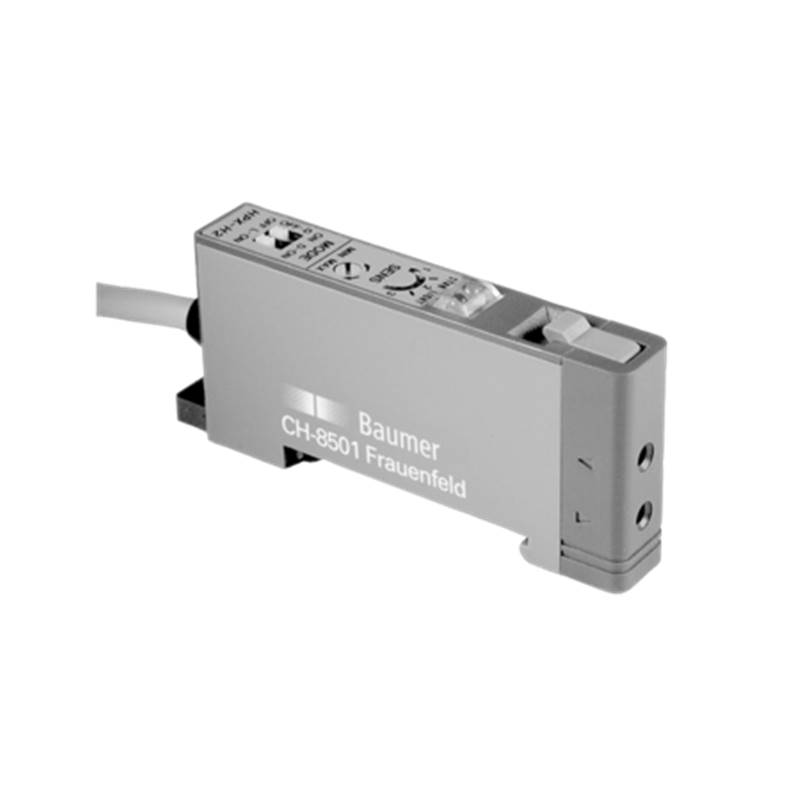 Amplificateur pour fibres optiques; Format: Parallélépipédique; Distance de commutation max.: 800 mm en barrage/230 mm en direct; Réglage: Potentiomètre; Source d'émission: LED, Lumière rouge; Type: Grande puissance; Sortie de commutation: PNP; Mode de commutation: Commutation claire/sombre; Interface de communication: -; Raccordement: Câble 2 m; Tension d'alimentation: 10-30Vdc; Dimensions (L x H x P): 10 x 29,7 x 60 mm; Matériau du boîtier: Polycarbonate/ABS; Indice de protection: IP40; Température de fonctionnement: -20 ... +60 °C