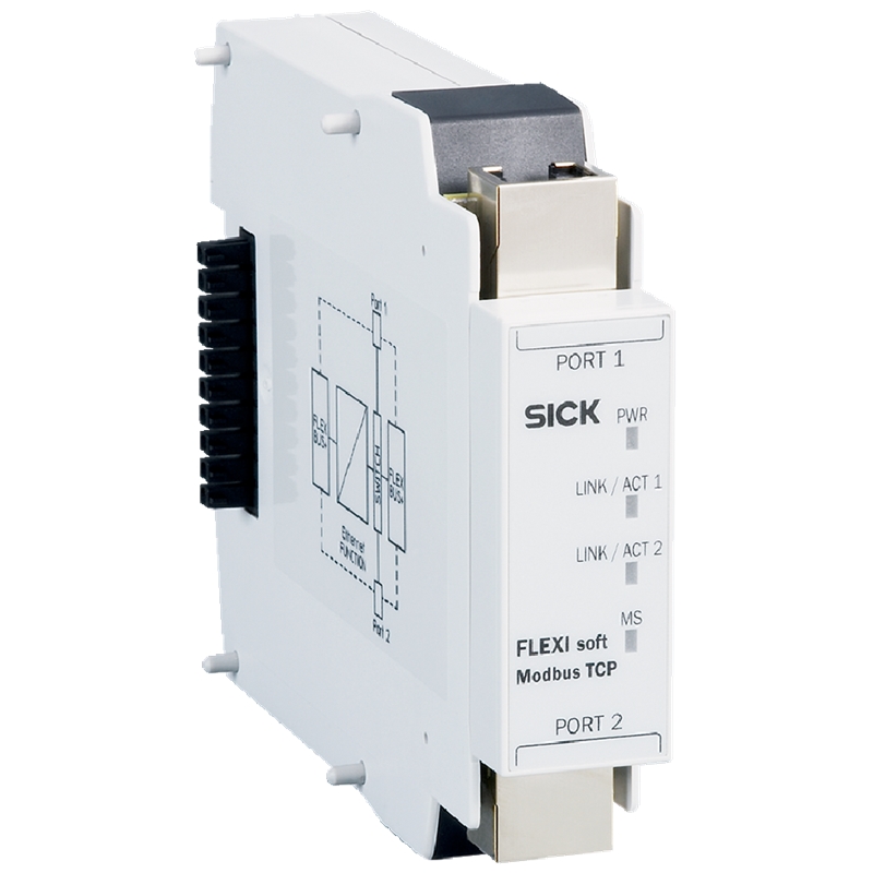 Systèmes de commande de sécurité, Flexi Soft, FX0-GMOD00030, Module: Passerelle, Bus de terrain, réseau industriel: Modbus® TCP, TCP/IP sockets, Mode de raccordement: 2 connecteurs femelles, RJ-45, Vernis de protection pour des exigences en