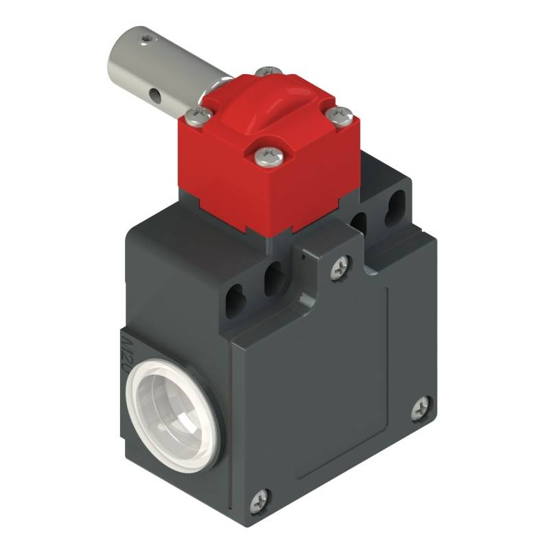 Ces interrupteurs de sécurité on été étudiés pour le contrôle des portails ou des protecteurs qui protègent les parties dangereuses des machines sans inertie. Très sensibles, ils ouvrent positivement les contacts après quelques degrés de rotation et envoient immédiatement le signal d’arrêt. La tête réglable de 90° en 90° permet l’installation dans différentes positions. Disponibles avec boîtiers en technopolymère ou en métal avec degré de protection IP67. La forme particulière permet l’emploi de ces interrupteurs là où la poussière et la saleté peuvent créer des dépôts empêchant le fonctionnement des interrupteurs de sécurité à actionneur