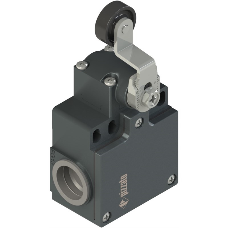 Interrupteur de position à levier rotatif à galet central; Boîtier: Boîtier métallique, duex entrées câbles filetées M20x1,5; Blocs de contact: 1NO+1NC rupture brusque (B5); Ouverture positive: Oui; Tête: Pour leviers rotatifs; Actionneur: A levier rotatif à galet central; Type de contacts: Contacts en argent; Presse-étoupes ou connecteurs pré-installés: Aucun; Degré de protection: IP67 selon EN 60529; Température ambiante: -25°C ... +80°C; Série: FZ