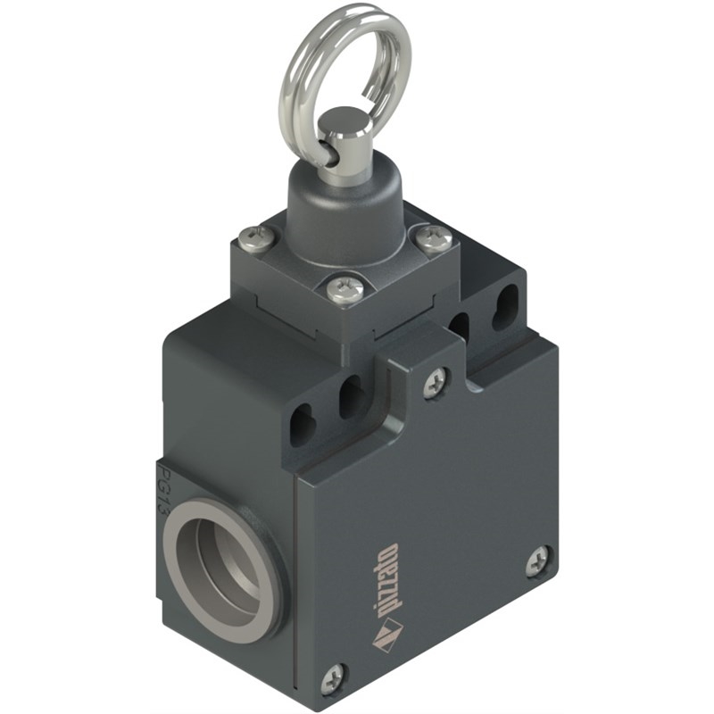 Interrupteur de position pour actionnement à câble; Boîtier: Boîtier métallique, deux entrées câbles filetées PG13,5; Blocs de contact: 1NO+1NC rupture brusque (B5); Tête: Pour actionnement à câble; Type de contacts: Contacts en argent; Presse-étoupes ou connecteurs pré-installés: Aucun; Degré de protection: IP67 selon EN 60529; Température ambiante: -25°C ... +80°C; Note: L'actionneur 76 au repos maintiens activé le bloc de contact. Tous les contacts NO et NC sont donc inversés au repos.; Série: FZ