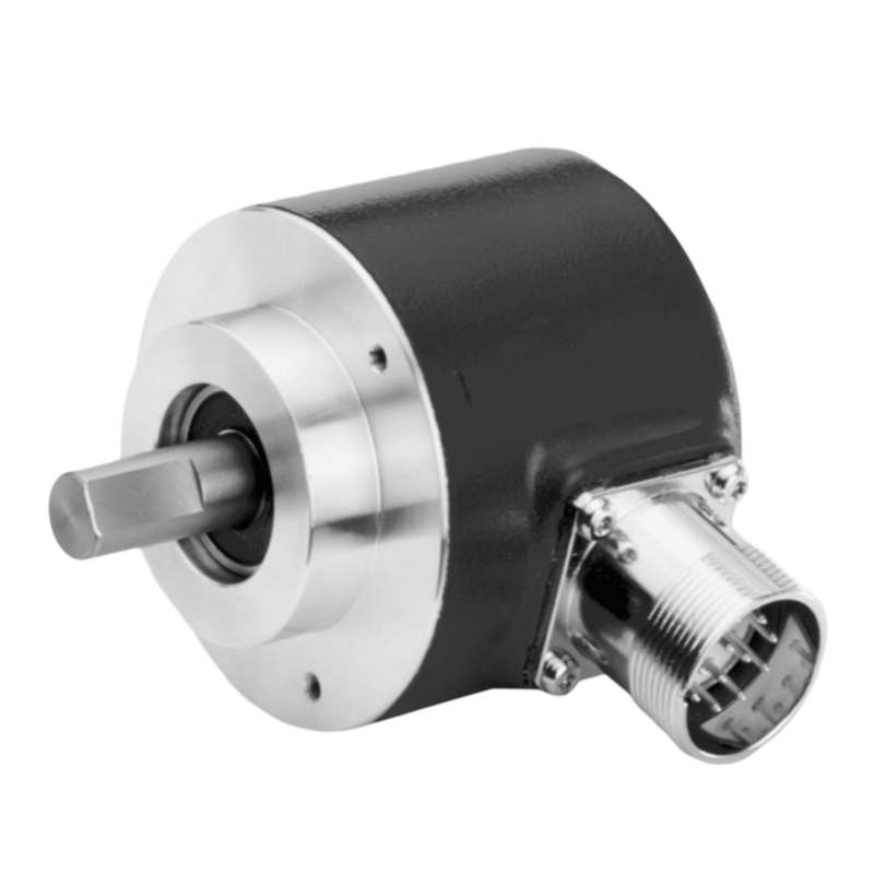 Codeur incrémental haute résolution, Ø58 mm à bride standard et axe Ø10 mm, IP65, résolution 20 000 imp/tour, sorties émetteur de ligne RS422 (5 VDC), alimentation 10-30 VDC, embase radiale mâle M23 à 12 contacts en sens horaire
