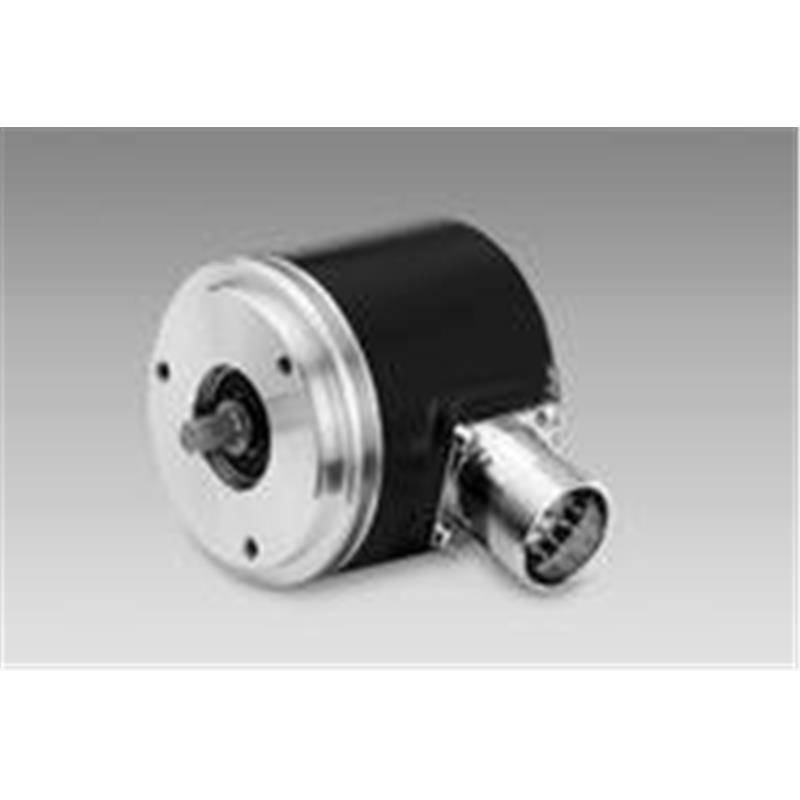 Codeur incrémental haute résolution, Ø58 mm à bride synchro et axe Ø6 mm, IP54, résolution 8 192 imp/tour, sorties émetteur de ligne, alimentation 5 VDC, embase radiale mâle M23 à 12 contacts en sens anti-horaire