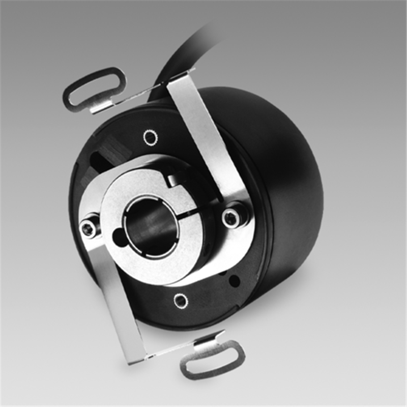 Codeur incrémental, boîtier polyamide Ø58 mm à axe creux traversant, alésage Ø12 mm, IP54, bague de serrage, résolution 2000 imp/tour, étage de sortie universel, alimentation 4,75-30 VDC, presse-étoupe radial avec câble de 5 m