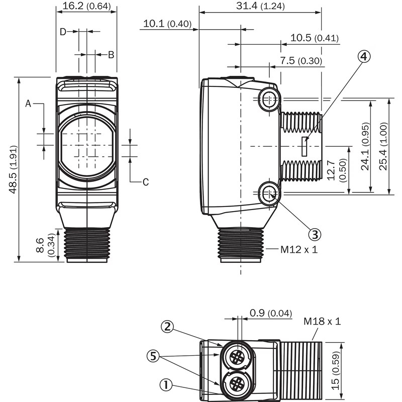 Capteur photoélectrique; Format: Hybride, fileté M18 x 1; Principe du capteur: Barrière; Principe de détection: Émetteur-récepteur; Distance de commutation: 60 m; Potentiomètre, droite: Sensibilité; Source d'émission: Laser, Lumière rouge visible; Mode de commutation: Antivalent; Type de commutation: Commutation claire/sombre; Sortie de commutation Q1: PNP, commutation claire; Sortie de commutation Q2: PNP, commutation sombre; Potentiomètre, gauche: Aucun; Temps de réponse: max. 0,5 ms; Fréquence de commutation: 1.000 Hz; Raccordement: Connecteur mâle M12, 4 pôles; Tension d'alimentation: 10-30Vdc; Type de fixation: M18, tête / latéral (24 à 24,5 mm); Dimensions (l x H x P): 16,2 mm x 48,5 mm x 31,8 mm; Matériau du boîtier: Plastique, VISTAL®; Matériau de l'optique: Plastique, PMMA; Indice de protection: IP67, IP69K; Température de fonctionnement: –30 °C ... +55 °C; Contenu de la livraison: Écrou de fixation (1x), M18, plastique, noir, plat; Caractéristiques spécifiques: Affichage de l'intensité du signal; Série: SureSense