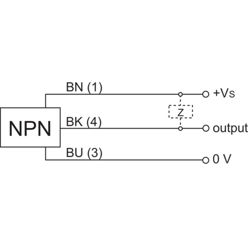Détecteur de proximité inductif, avec vis butée; Format: Cylindrique fileté, M12 x 1; Version électrique: 3 fils DC; Distance de commutation Sn: 1,2 mm; Montage: En butée; Sortie de commutation: NPN; Type de commutation: Contact à fermeture (NO); Fréquence de commutation: < 5 kHz; Raccordement: Connecteur mâle M8, 3 pôles; Tension d'alimentation: 10-30Vdc; Dimensions: Ø 12 x 56 mm; Matériau du boîtier: Acier / Acier trempé; Matériau (face active): PBT; Indice de protection: IP67; Température de fonctionnement: -25 ... +75 °C