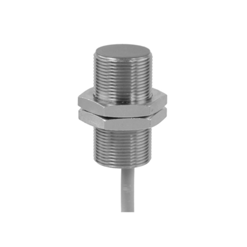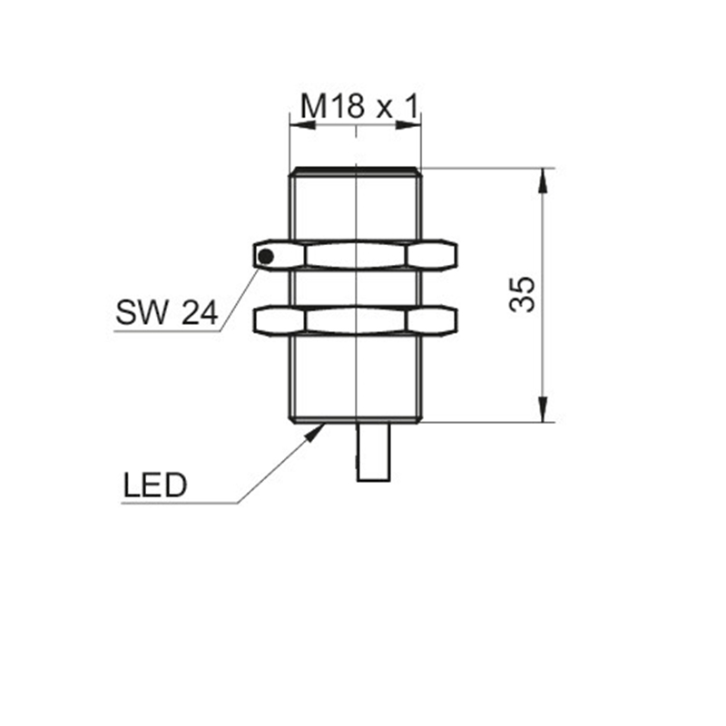 Détecteur de proximité inductif; Format: Cylindrique fileté, M18 x 1; Version électrique: 3 fils DC; Distance de commutation Sn: 8 mm; Montage: Quasi noyé; Sortie de commutation: PNP; Type de commutation: Contact à fermeture (NO); Fréquence de commutation: < 500 Hz; Raccordement: Câble 5 m, PVC; Tension d'alimentation: 10-30Vdc; Dimensions: Ø 18 x 35 mm; Matériau du boîtier: Laiton nickelé; Matériau (face active): PBT; Indice de protection: IP67; Température de fonctionnement: -25 ... +75 °C