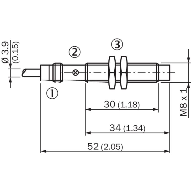 Détecteur de proximité inductif; Format: Cylindrique fileté, M8 x 1; Version électrique: 3 fils DC; Distance de commutation Sn: 2,5 mm; Montage: Non noyable; Sortie de commutation: PNP; Type de commutation: Contact à fermeture (NO); Fréquence de commutation: 4.000 Hz; Interface de communication: -; Raccordement: Câble, 3 fils, 2 m, PVC; Tension d'alimentation: 10-30Vdc; Diamètre: Ø 8 mm; Longueur totale du boîtier: 52 mm; Longueur de filetage utile: 30 mm; Matériau du boîtier: Métal, laiton nickelé; Matériau, surface active: Plastique, plastique; Indice de protection: IP67 (EN 60529); Température de fonctionnement: –25 °C ... +75 °C; Contenu de la livraison: Écrou de fixation, laiton, nickelé (2 x); Série: IME