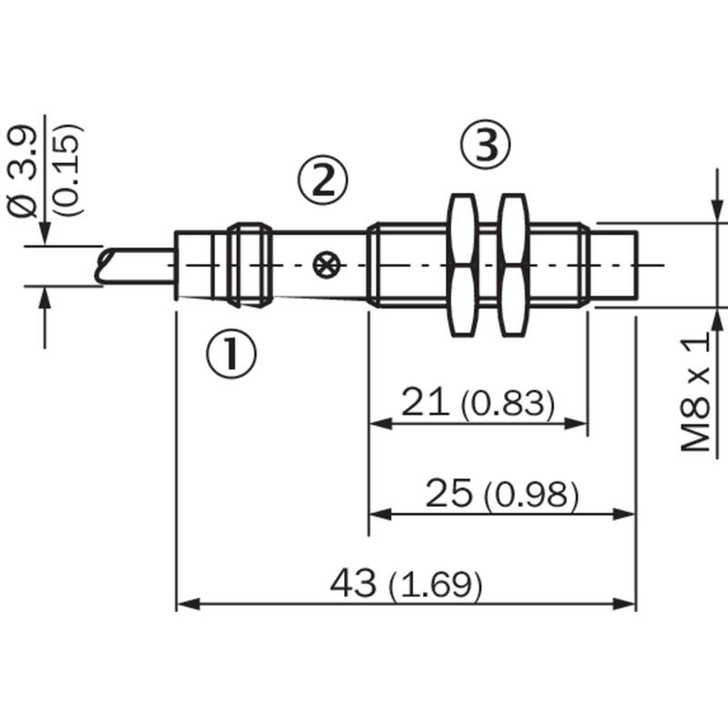 Détecteur de proximité inductif; Format: Cylindrique fileté, M8 x 1; Version électrique: 3 fils DC; Distance de commutation Sn: 2,5 mm; Montage: Non noyable; Sortie de commutation: PNP; Type de commutation: Contact à fermeture (NO); Fréquence de commutation: 4.000 Hz; Interface de communication: -; Raccordement: Câble, 3 fils, 5 m, PVC; Tension d'alimentation: 10-30Vdc; Diamètre: Ø 8 mm; Longueur totale du boîtier: 43 mm; Longueur de filetage utile: 21 mm; Matériau du boîtier: Métal, laiton nickelé; Matériau, surface active: Plastique, plastique; Indice de protection: IP67 (EN 60529); Température de fonctionnement: –25 °C ... +75 °C; Contenu de la livraison: Écrou de fixation, laiton, nickelé (2 x); Série: IME