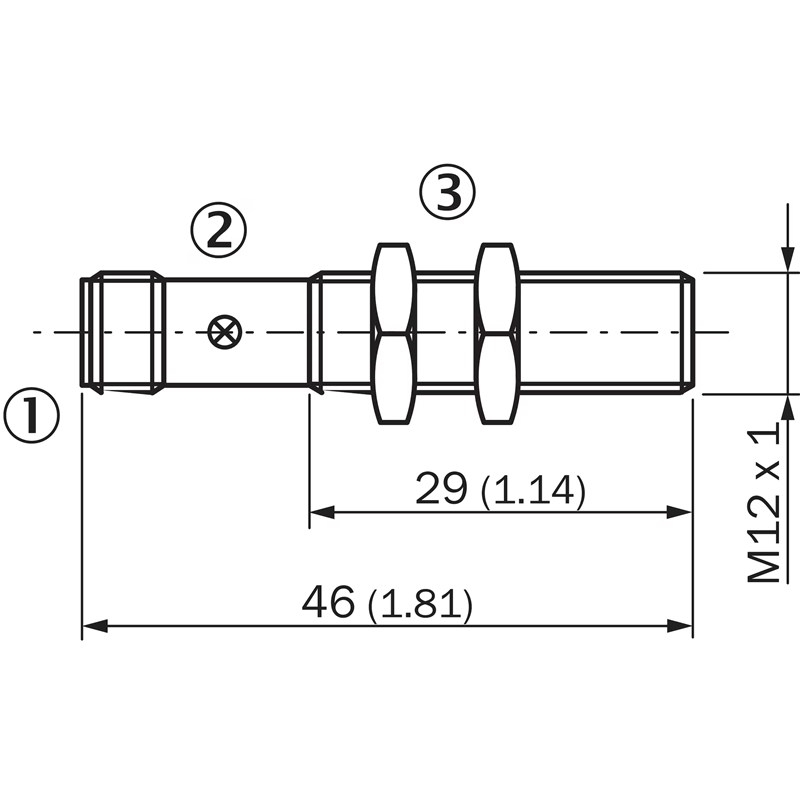 Détecteur de proximité inductif; Version électrique: 3 fils DC; Distance de commutation Sn: 4 mm; Montage: Noyable; Sortie de commutation: PNP; Type de commutation: Contact à fermeture (NO); Fréquence de commutation: 2.000 Hz; Raccordement: Connecteur mâle M12, 4 pôles; Tension d'alimentation: 10-30Vdc; Diamètre: Ø 12 mm; Longueur totale du boîtier: 46 mm; Longueur de filetage utile: 29 mm; Matériau du boîtier: Laiton, nickelé; Matériau, surface active: Plastique, PA 66; Indice de protection: IP67 (EN 60529); Température de fonctionnement: –40 °C ... +60 °C; Contenu de la livraison: Écrou de fixation, laiton, nickelé (2 x); Série: IME