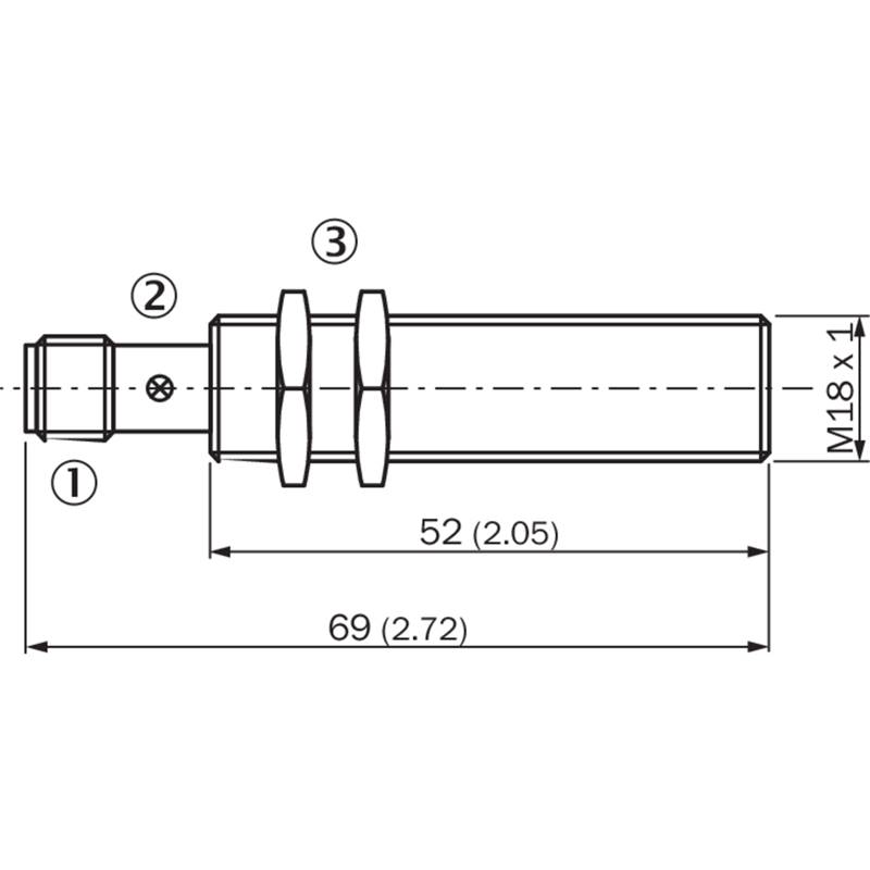 Détecteur de proximité inductif; Format: Cylindrique fileté, M18 x 1; Version électrique: 3 fils DC; Distance de commutation Sn: 8 mm; Montage: Non noyable; Sortie de commutation: PNP; Type de commutation: Contact à ouverture (NF); Fréquence de commutation: 1.000 Hz; Interface de communication: -; Raccordement: Connecteur mâle M12, 4 pôles; Tension d'alimentation: 10-30Vdc; Diamètre: Ø 18 mm; Longueur totale du boîtier: 69 mm; Longueur de filetage utile: 52 mm; Matériau du boîtier: Métal, laiton nickelé; Matériau, surface active: Plastique, plastique; Indice de protection: IP67 (EN 60529); Température de fonctionnement: –25 °C ... +75 °C; Contenu de la livraison: Écrou de fixation, laiton, nickelé (2 x); Série: IME