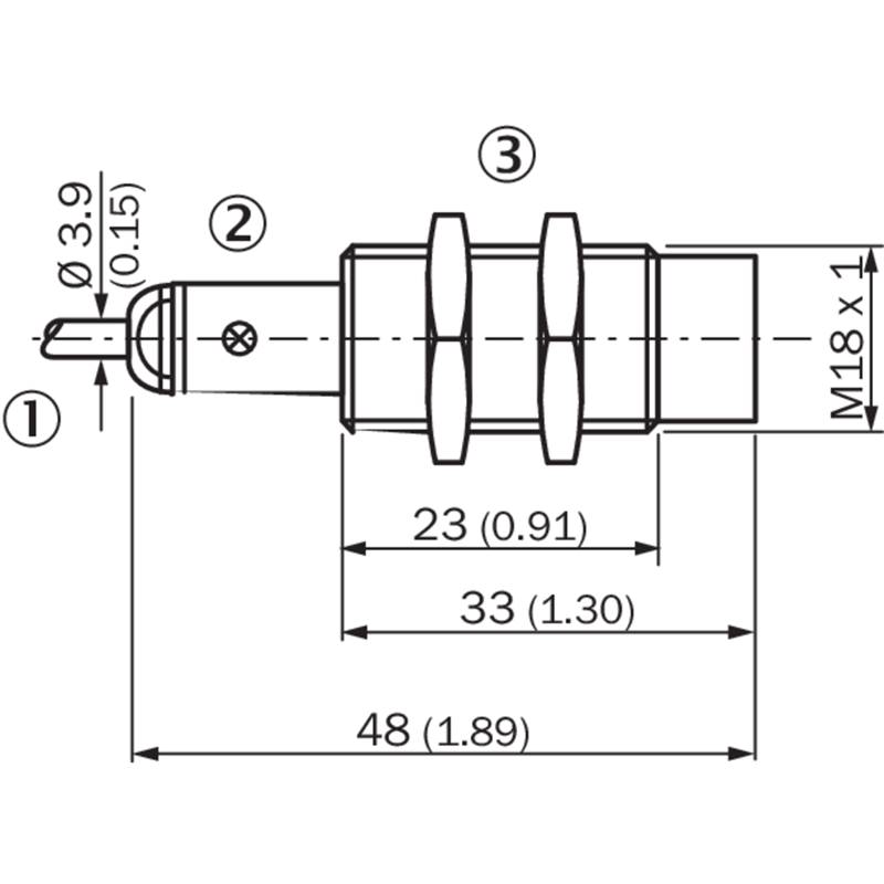 Détecteur de proximité inductif; Format: Cylindrique fileté, M18 x 1; Version électrique: 3 fils DC; Distance de commutation Sn: 8 mm; Montage: Non noyable; Sortie de commutation: NPN; Type de commutation: Contact à fermeture (NO); Fréquence de commutation: 1.000 Hz; Interface de communication: -; Raccordement: Câble, 3 fils, 2 m, PVC; Tension d'alimentation: 10-30Vdc; Diamètre: Ø 18 mm; Longueur totale du boîtier: 48 mm; Longueur de filetage utile: 23 mm; Matériau du boîtier: Métal, laiton nickelé; Matériau, surface active: Plastique, plastique; Indice de protection: IP67 (EN 60529); Température de fonctionnement: –25 °C ... +75 °C; Contenu de la livraison: Écrou de fixation, laiton, nickelé (2 x); Série: IME
