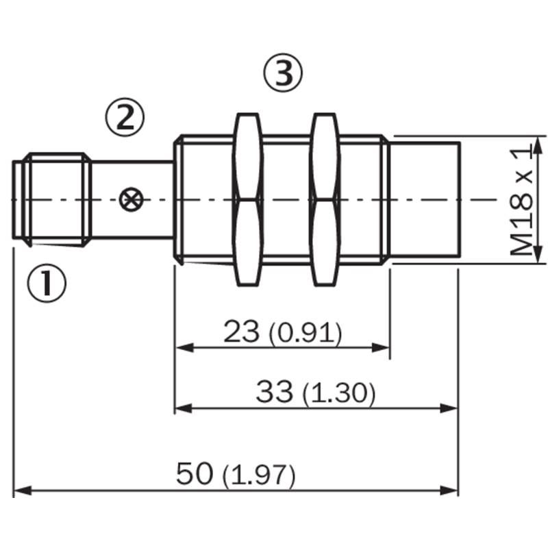 Détecteur de proximité inductif; Format: Cylindrique fileté, M18 x 1; Version électrique: 3 fils DC; Distance de commutation Sn: 12 mm; Montage: Non noyable; Sortie de commutation: NPN; Type de commutation: Contact à fermeture (NO); Fréquence de commutation: 1.000 Hz; Interface de communication: -; Raccordement: Connecteur mâle M12, 4 pôles; Tension d'alimentation: 10-30Vdc; Diamètre: Ø 18 mm; Longueur totale du boîtier: 50 mm; Longueur de filetage utile: 23 mm; Matériau du boîtier: Métal, laiton nickelé; Matériau, surface active: Plastique, plastique; Indice de protection: IP67 (EN 60529); Température de fonctionnement: –25 °C ... +75 °C; Contenu de la livraison: Écrou de fixation, laiton, nickelé (2 x); Série: IME