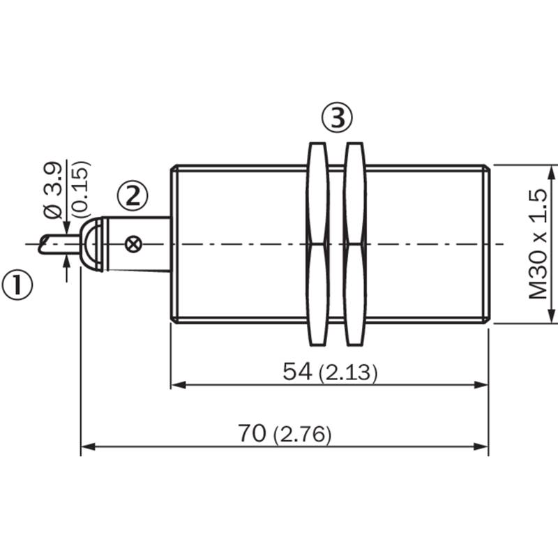 Détecteur de proximité inductif; Format: Cylindrique fileté, M30 x 1,5; Version électrique: 3 fils DC; Distance de commutation Sn: 10 mm; Montage: Noyable; Sortie de commutation: NPN; Type de commutation: Contact à ouverture (NF); Fréquence de commutation: 500 Hz; Interface de communication: -; Raccordement: Câble, 3 fils, 2 m, PVC; Tension d'alimentation: 10-30Vdc; Diamètre: Ø 30 mm; Longueur totale du boîtier: 70 mm; Longueur de filetage utile: 54 mm; Matériau du boîtier: Métal, laiton nickelé; Matériau, surface active: Plastique, plastique; Indice de protection: IP67 (EN 60529); Température de fonctionnement: –25 °C ... +75 °C; Contenu de la livraison: Écrou de fixation, laiton, nickelé (2 x); Série: IME