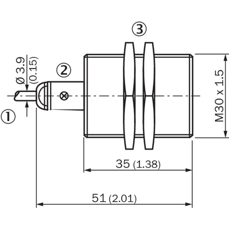 Détecteur de proximité inductif; Format: Cylindrique fileté, M30 x 1,5; Version électrique: 3 fils DC; Distance de commutation Sn: 10 mm; Montage: Noyable; Sortie de commutation: PNP; Type de commutation: Contact à fermeture (NO); Fréquence de commutation: 500 Hz; Interface de communication: -; Raccordement: Câble, 3 fils, 10 m, PVC; Tension d'alimentation: 10-30Vdc; Diamètre: Ø 30 mm; Longueur totale du boîtier: 51 mm; Longueur de filetage utile: 35 mm; Matériau du boîtier: Métal, laiton nickelé; Matériau, surface active: Plastique, plastique; Indice de protection: IP67 (EN 60529); Température de fonctionnement: –25 °C ... +75 °C; Contenu de la livraison: Écrou de fixation, laiton, nickelé (2 x); Série: IME