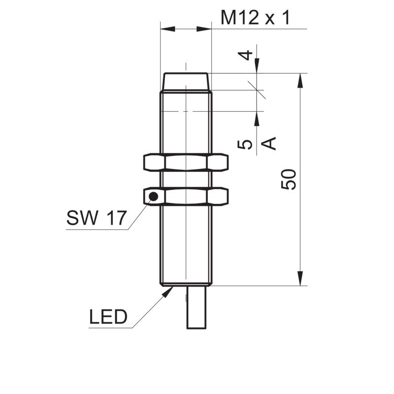 Détecteur de proximité inductif (Série GammaProx); Format: Cylindrique fileté, M12 x 1; Version électrique: 3 fils DC; Distance de commutation Sn: 10 mm; Montage: Non noyé; Sortie de commutation: PNP; Type de commutation: Contact à fermeture (NO); Fréquence de commutation: < 1,5 kHz; Raccordement: Câble 2 m, PUR; Tension d'alimentation: 6-36Vdc; Dimensions: Ø 18 x 50 mm; Matériau du boîtier: Laiton nickelé; Matériau (face active): PBT; Indice de protection: IP67; Température de fonctionnement: -25 ... +75 °C