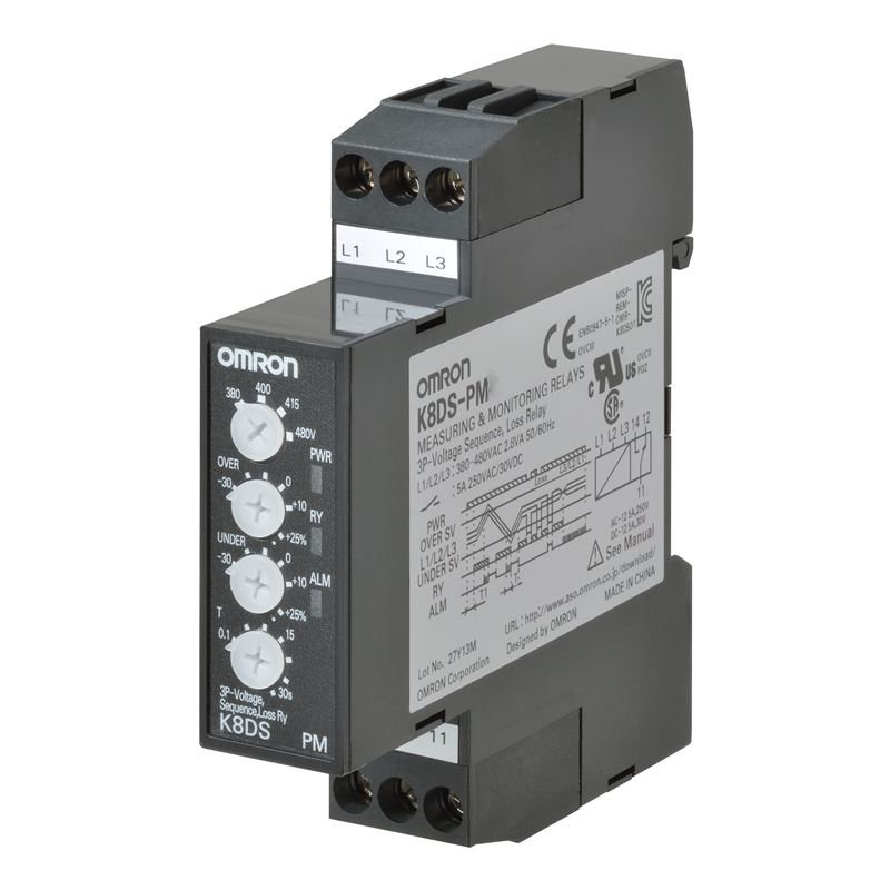 Relais de contrôle de tension triphasée, succession de phases, perte de phase - K8DS-PM