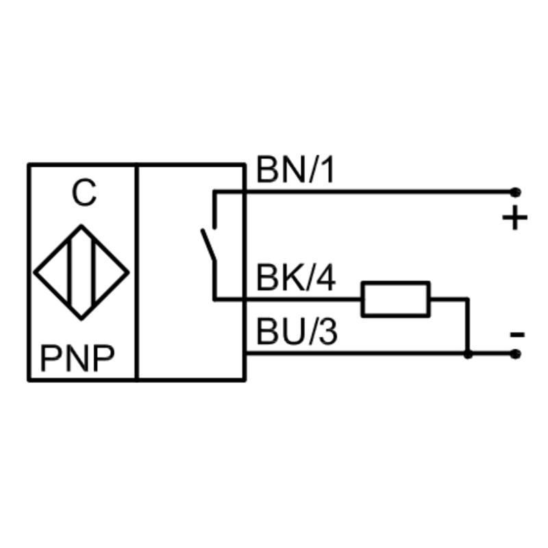 Détecteur de proximité capacitif; Format: Cylindrique fileté, M18 x 1; Version électrique: 4 fils DC; Portée Sn: 5 mm; Portée réglable: 0,5…10 mm; Réglage: Potentiomètre; Montage: Noyé; Sortie de commutation: PNP; Type de commutation: Antivalente (NO+NF); Fréquence de commutation max.: 300 Hz; Raccordement: Câble 2 m, PUR, 3 x 0,34 mm²; Tension d'alimentation: 10-35Vdc; Diamètre: Ø 18 mm; Longueur totale du boîtier: 70 mm; Longueur de filetage utile: 55 mm; Matériau boîtier: Laiton nickelé; Face active: PTFE (FDA 21 CFR 177.1550); Indice de protection: IP67 (IEC 60529); Température de fonctionnement: -25 ... +70 °C; Contenu de la livraison: 2 écrous M 18 x 1; Ancienne référérence: KAS-80-A13-S; Série: KAS-80