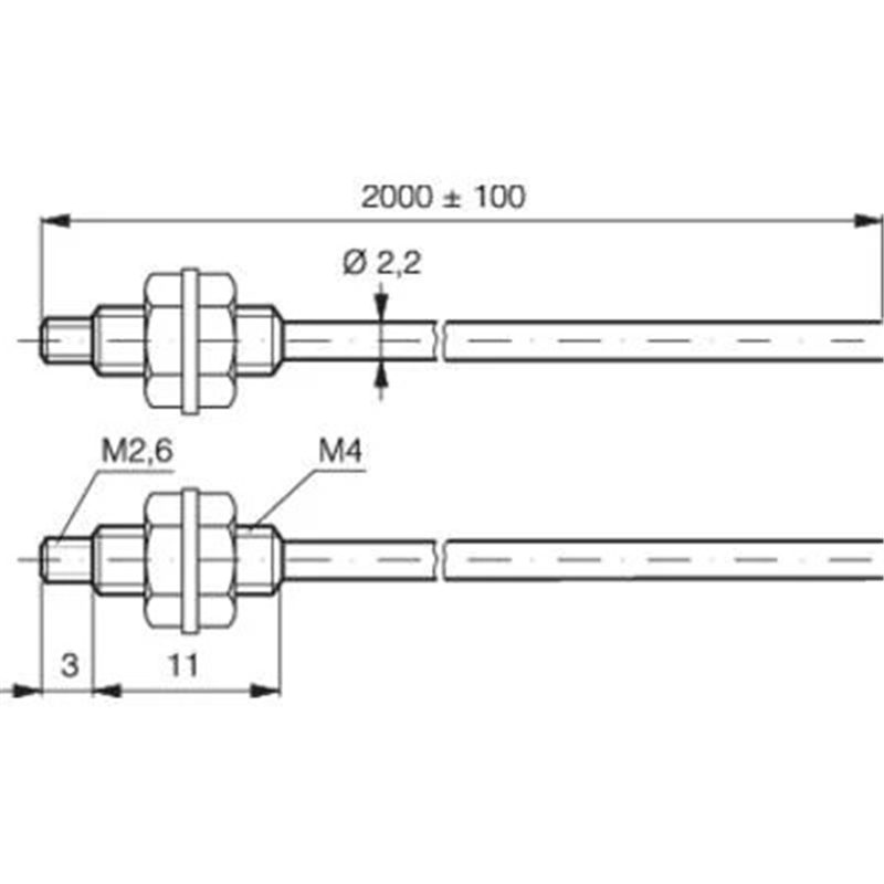 Fibre optique, barrage, synthétique, tête M4 inox V2A, longueur 2 m, portée 500 mm, -25 ... +70 °C