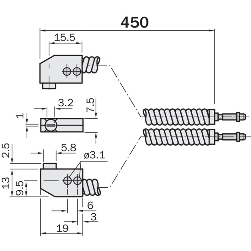 Fibre optique; Type d'appareil: Fibre optique; Pour Amplificateur pour fibres optiques: WLL12; Principe de détection: Système émetteur-récepteur; Longueur de fibre optique: 450 mm; Matériau, fibre: Fibre de verre; Matériau, gaine: Gaine en spirale chromée avec revêtement PVC; Rayon de courbure, fibre optique: 20 mm; Température de fonctionnement: –10 °C ... +60 °C; Série: LM/LT