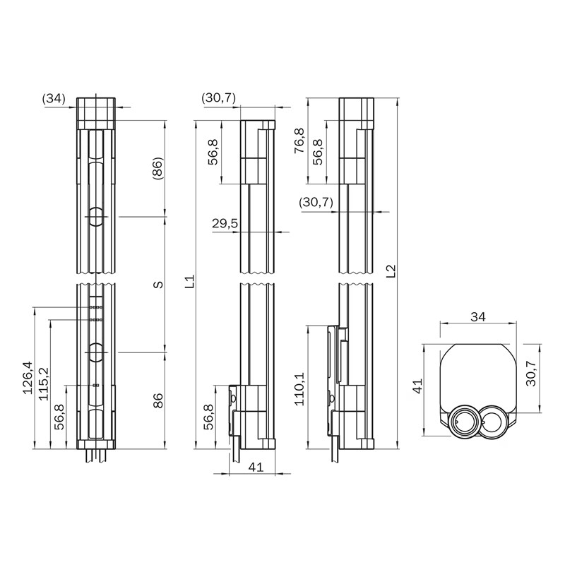 Barrières photoélectriques de sécurité, deTem; Version du produit: deTem4; Domaine d'utilisation: Environnement industriel standard; Principe de fonctionnement: Émetteur / récepteur; Pièce du système: Émetteur; Portée: 90 m; Nombre de faisceaux: 4; Entraxe des faisceaux: 300 mm; Tension d'alimentation Uv: 24 V DC (19,2 V DC ... 28,8 V DC); Raccordement du système: Dépend du connecteur système (connecteur mâle M12, 5 pôles ou 8 pôles); Section du boîtier: 30,7 mm x 34 mm; Sécurité: Type 4 (IEC 61496), SIL 3 (CEI 61508, CEI 62061), Catégorie 4 (ISO 13849), PL e (ISO 13849); Indice de protection: IP65, IP67 (CEI 60529); Température de service: –30 °C ... +55 °C