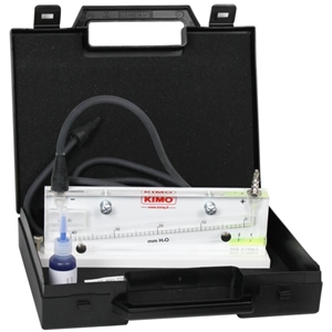 Manomètre transportable à colonne inclinée. Type MT.40, V2. Echelle : 0-40 mm H2O. Livré avec raccords n° 505, manchons n° 494, liquide VOLT 1S, fixations magnétiques, support et embase. L'ensemble livré dans une mallette de transport
