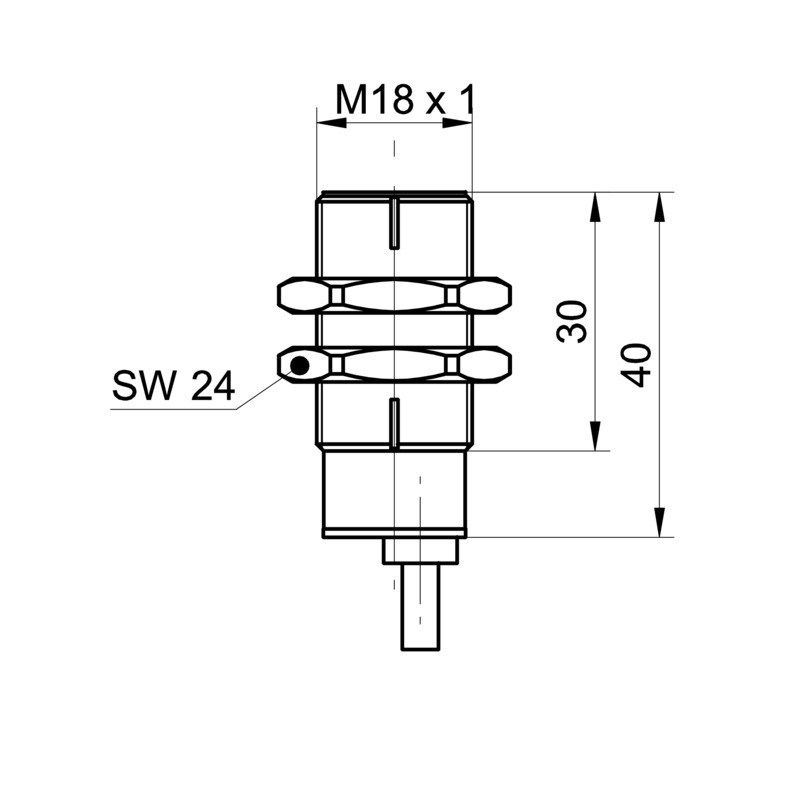 Détecteur angulaire magnétique; Format: Cylindrique, fileté M18 x 1; Plage angulaire: 160° linéaire; Résolution: 0,09 °; Précision de système: ± 0,25 %; Distance de travail max.: 5 mm, rotor avec aimant MSFS; Circuit de sortie: Sortie de tension; Signal de sortie: 0,5 ... 4,5 VDC; Plage de tension +Vs: 12 … 28 VDC; Raccordement: Câble 3 x 0,25, 5 m, PUR; Diamètre: Ø18 mm; Longueur totale du boîtier: 40 mm; Longueur de filetage utile: 30 mm; Matériau du boîtier: Laiton nickelé; Matériau (face active): PBTP; Classe de protection: IP67; Température de fonctionnement: -40 … 85 °C; Remarque: Aimant non inclus; Série: MDRM