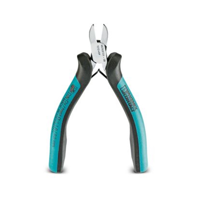 Pince coupante diagonale électronique, tête arrondie, sans chanfrein, ressort d'ouverture, polie effet miroir et huilée, poignée à 2 éléments, capacité de coupe de diam. : 0,2 ... 2,0 mm si souple ; 1,2 mm si dureté moyenne ; 0,5 mm si dur