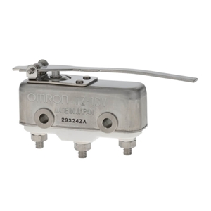 Basic switch, general purpose, reverse hinge roller lever (40.6 r, 9.5 x 4 dia., resin roller), snap action, self-reset type, single-pole, double-throw type, spdt, solder terminal