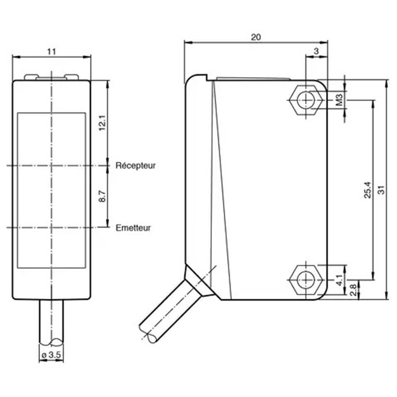 Cellule miniature réflex polarisé 5M PNP Câble 5M